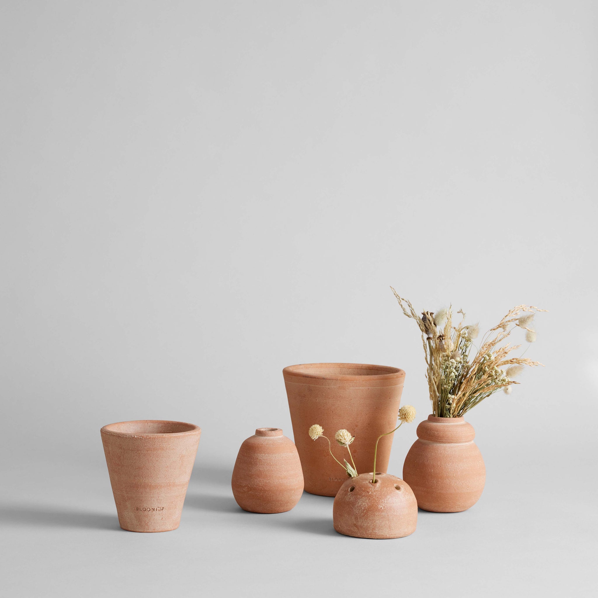 Designed to hold water and stand alone, this dome-shaped Terra Cotta Flower Frog Vase is handmade by artisans in Guatemala from local terra cotta clay. This compact design features a protective, water-tight seal on the inside and multiple holes for stems.